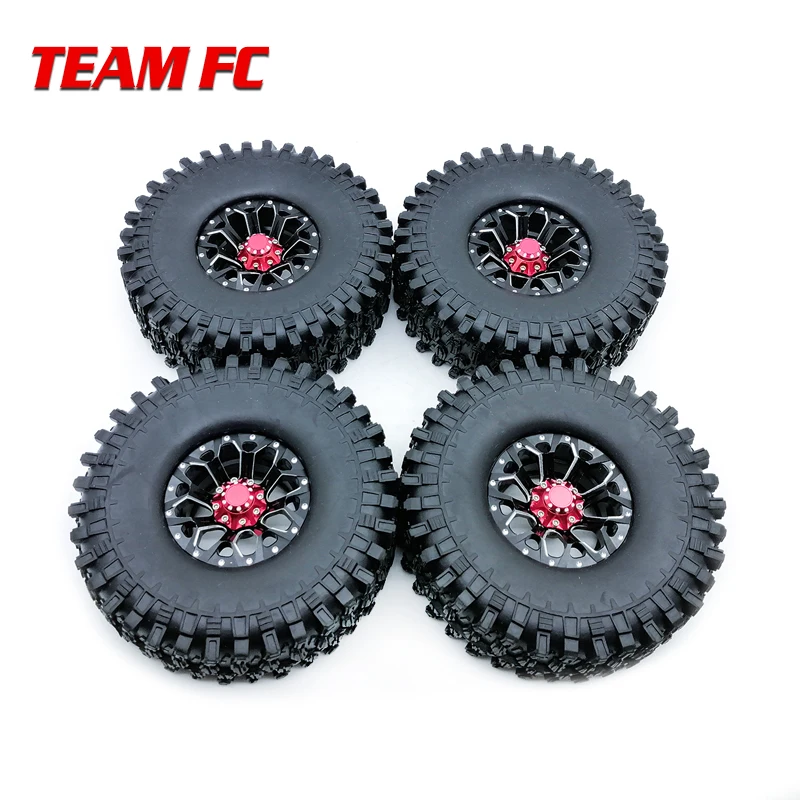 BEST 4Pcs 1.9 Inch 120mm 1/10 Rock Crawler Tires with Alloy Beadlock Wheel Rim for 1/10 RC Crawler Axial